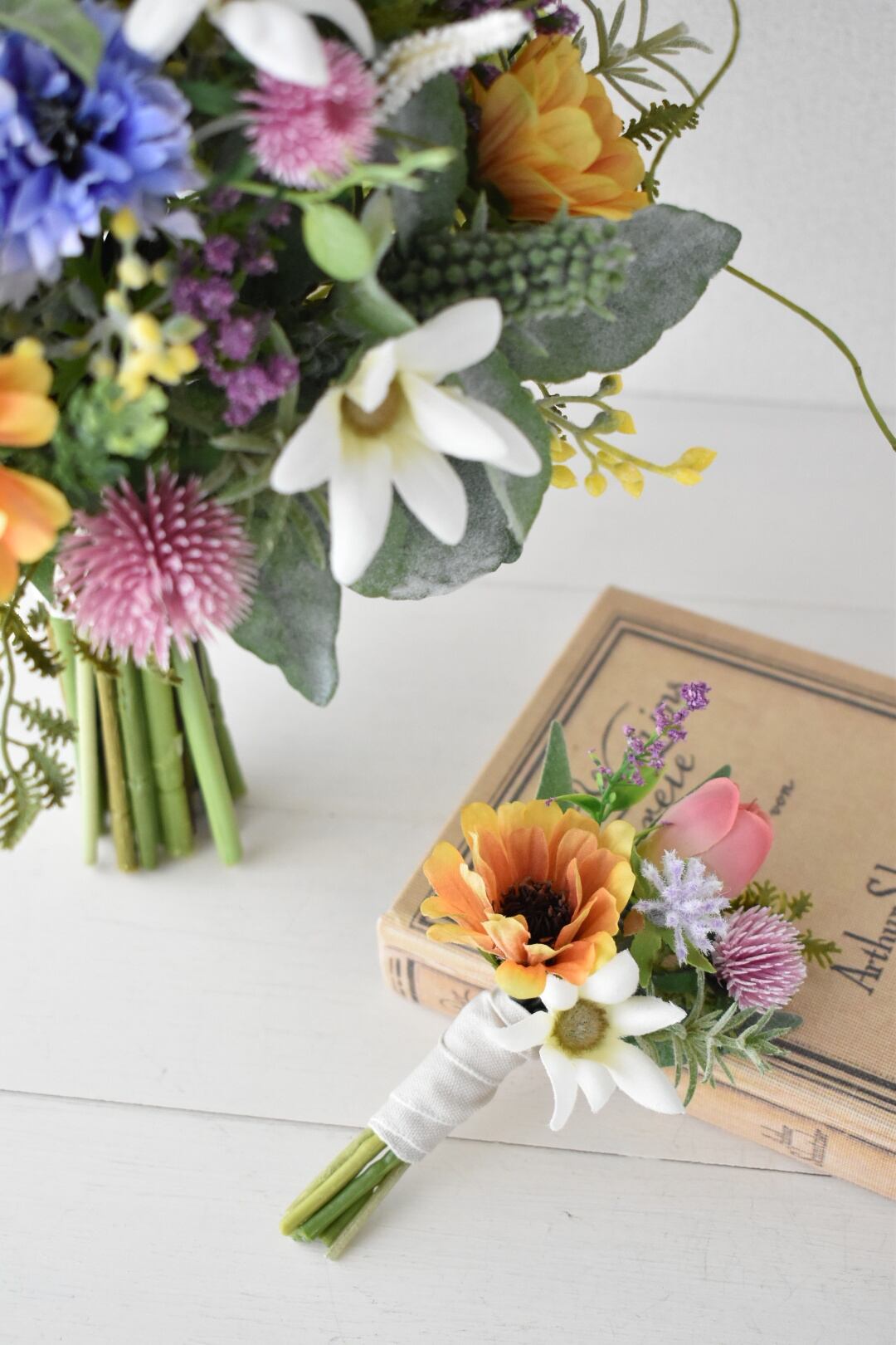 すべて高品質な造花(アーティフィシャルフラワー)を使用して制作していますので、お式当日はもちろん、前撮りや後撮りにもご使用いただけます。