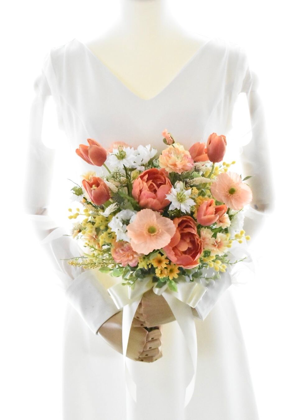 すべて高品質な造花(アーティフィシャルフラワー)を使用して制作していますので、お式当日はもちろん、前撮りや後撮りにもご使用いただけます。